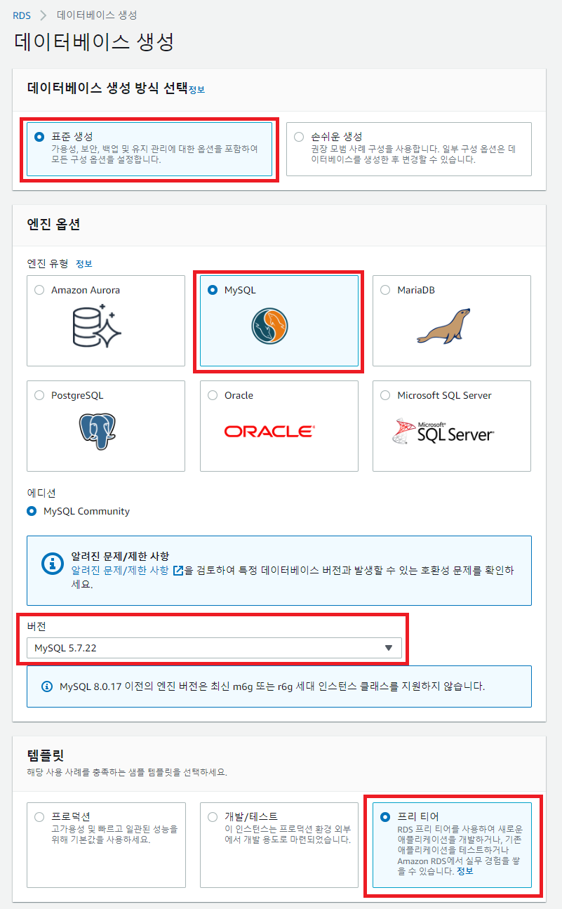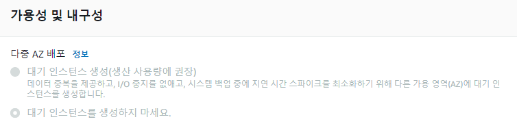 - 다중 AZ 배포(Multi-AZ deployment) : 다른 나라에서도 똑같은 퍼포먼스를 내고 싶은 경우. free는 세팅 불가.